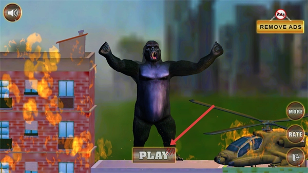 1、点击【PLAY】按钮,即可进入游戏操控金刚,开启破坏城市的进程。