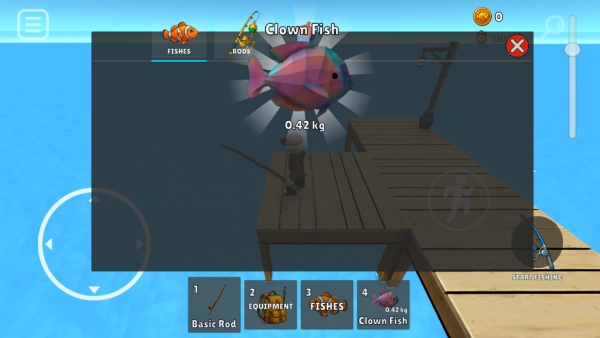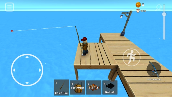 使用左侧的虚拟摇杆控制角色移动,前往各种各样的水域体验钓鱼的乐趣吧!