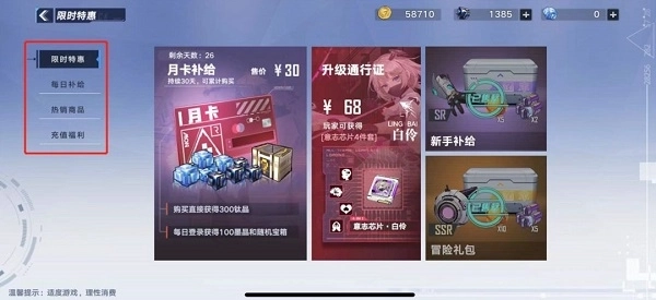 17.商店:涵盖充值、补给以及可使用墨晶购买的各类商品。