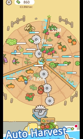 切片成熟的农产品,赚取金币提升浇水效率,解锁珍稀种子,还能实现自动化收割——打造专属于你的终极循环农业帝国!
