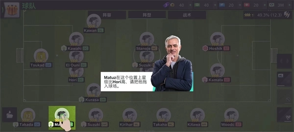 9、选择下方的替补队员,将其移动到想要替换的队员位置上,就能完成替换操作。