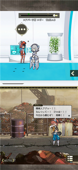 2、接下来是角色与世界背景的介绍,上方是机械人类世界,下方则是异世界现代世界。