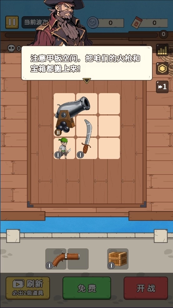 2、根据引导把武器和船员都拖到船上的格子中去。