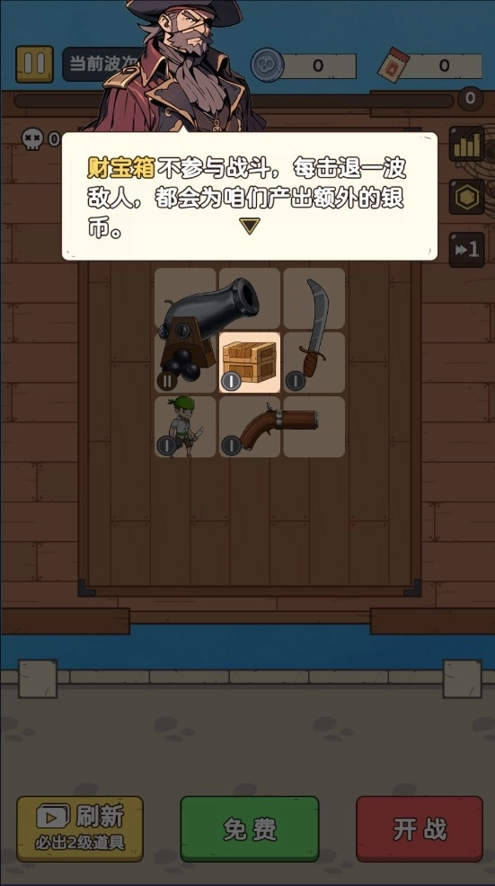 6、财宝箱不会参与战斗,每当击退一波敌人,它都会为我们产出额外的银币。
