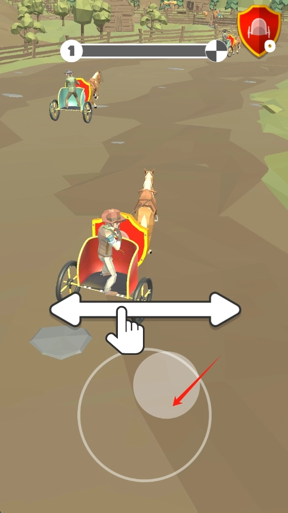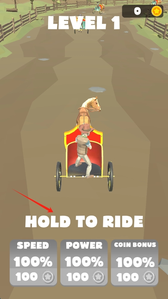 在游戏第一关的启动界面,长按屏幕即可启动马车,开启竞速冒险之旅,点击按钮就能开始游戏。