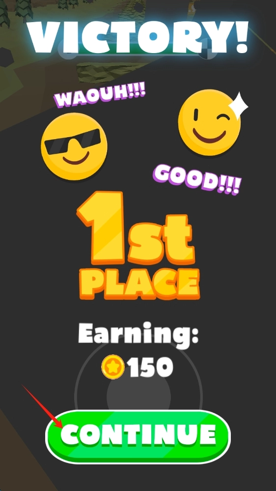 在关卡成功界面,点击CONTINUE按钮即可进入下一关,开启更具挑战性的马车竞速任务,现在点击继续游戏吧。