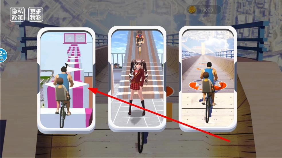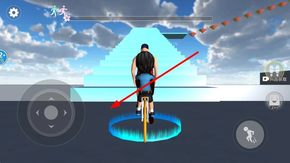 障碍跨越玩法:面对赛道上的断口与凸起障碍,需预先规划骑行路径,适时调整速度与方向,借助自行车的惯性或精准的操控技巧,平稳越过障碍,持续向上骑行。