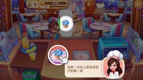 最后一步,点击“上菜”按钮,把蛋糕递给顾客,这样我们的第一个订单就完成了。