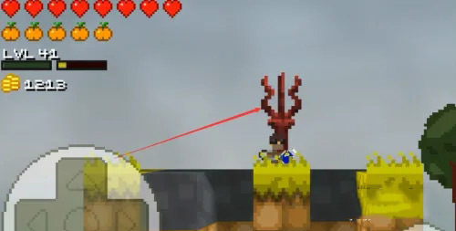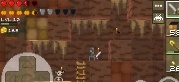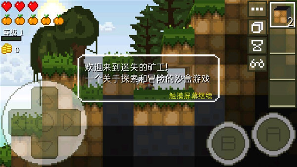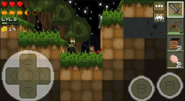屏幕左下角设有控制移动的虚拟摇杆,通过它可操控角色移动并向前探险;右下角的A键为跳跃功能,连续点击两次即可触发两段跳,B键则是攻击键。在冒险过程中,角色需要借助跳跃、潜水和挖掘等动作来保护自身安全。