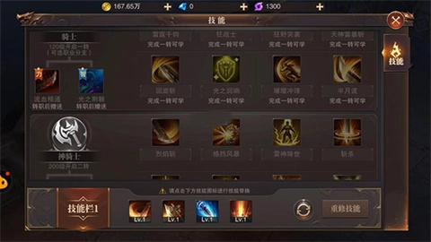 在这里,玩家能够查看当前职业的全部技能,初始状态下各技能等级均为1级。当技能提升至顶级后,一般会解锁额外的增益效果。若想为技能增加点数,就需要获取珍稀的技能觉醒石。