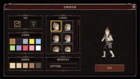 2、在正式进入游戏前,需要先创建一个角色,玩家能够对角色的发型颜色以及肤色进行自定义设置。