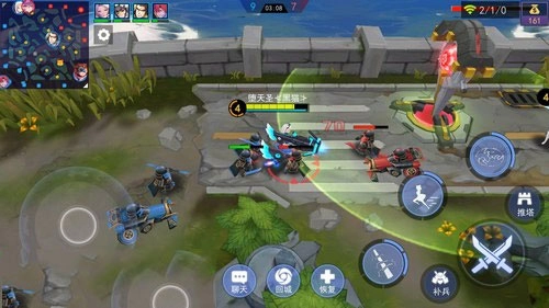 1、默认的操作按钮只有一个攻击键,而这个攻击键会优先锁定英雄,当英雄和小兵站在一起的时候就会妨碍补兵。