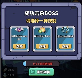 消灭boss后会随机出现3个技能,你可以从中选一个,也能选择重新随机。
