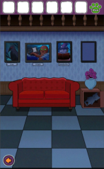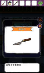 12、回到最初的房间,用螺丝刀卸下左侧的灯,向右走到有红色沙发的房间,点击第一幅画,再用螺丝刀取下铭牌,得到刮刀。