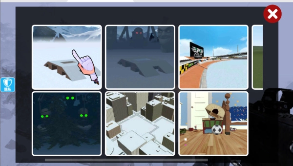 1、进入游戏后,点击中间的“开始游戏”按钮即可进入场景界面,在这里你可以自由选择喜欢的场景进行游玩。