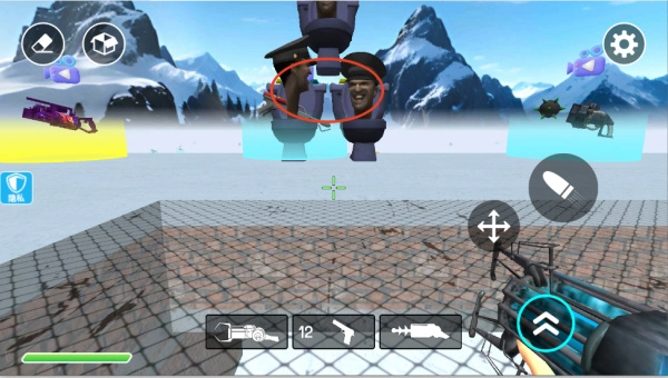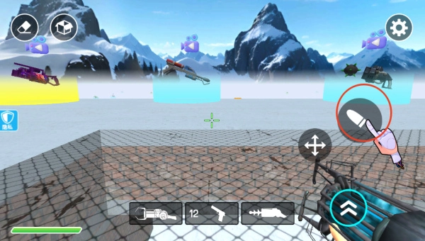 3、接下来只需静候敌人出现,通过滑动屏幕就能操控中间的瞄准键;