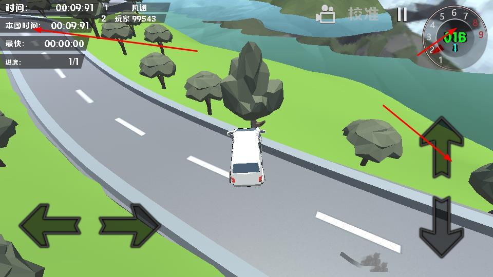 2、比赛过程中,左侧箭头用于操控车辆转向,右侧箭头可调节车辆的加速或减速;同时需留意上方显示的时间与排名信息,以此把控竞速的节奏。