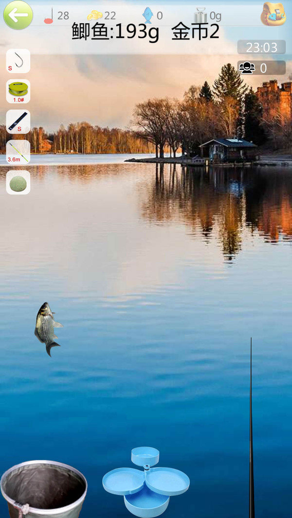 6、玩这款游戏,耐心很关键。要静静等待鱼饵浮动,切不可急躁,否则鱼儿都会被你惊跑。