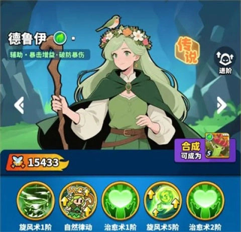 德鲁伊同样属于辅助角色,占用1格位置,攻击范围为6格,其合成公式是德鲁伊与风行者组合,生成荆棘守卫。