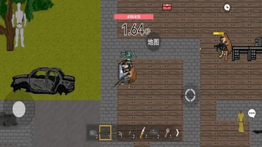 1、通过虚拟摇杆操控小狗跑动,点击屏幕即可自动瞄准,长按屏幕蓄力后释放特殊攻击;