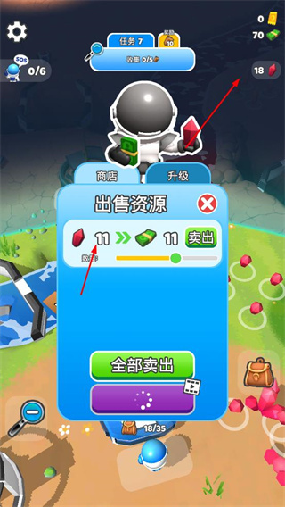 3、在资源售卖界面,可将已收集的资源进行出售以获取绿色资源,该资源可用于进行升级与解锁操作。