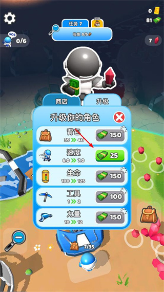 4、对角色属性进行升级,以此提高挖掘效率与生存能力,进而不断开展挖掘、完成任务、进行交易并实现升级。