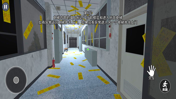 当被异常追逐时,点击奔跑加速,借助走廊的地形特点迂回避开,返回安全电梯并关闭电梯门来躲避危险。