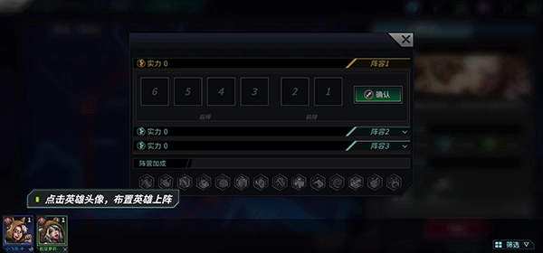 4、点击英雄头像,安排英雄上阵,上场英雄数量根据实际选择情况确定,选好后点击确认。