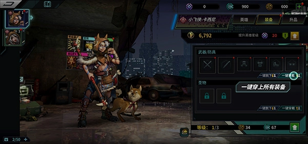 7、还能返回大厅,给英雄穿戴装备,并且可以提升英雄的品级,以此来增强战斗力。