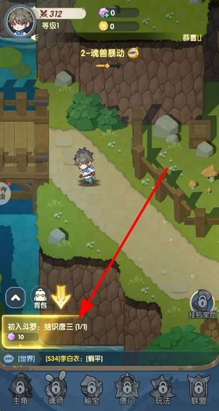 1、跟着主线剧情任务走,操控角色在满是斗罗元素的场景里移动,完成各种各样的剧情任务,开启新的区域。