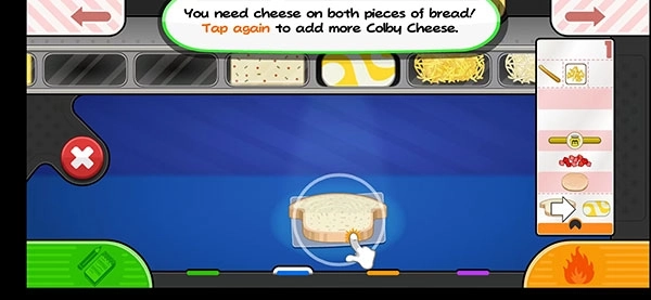 3.油炸三明治:这一步至关重要,玩家的三明治需经油炸后才能出炉。油炸程度可通过炉子上的计量槽查看,计量槽颜色越深,意味着三明治越接近完成状态。需要特别注意的是,三明治有正反两面,务必确保两面都完成油炸,同时还要记住不能油炸过长时间。