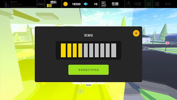 3、按照屏幕顶部的任务提示,优先执行车辆加油的操作。