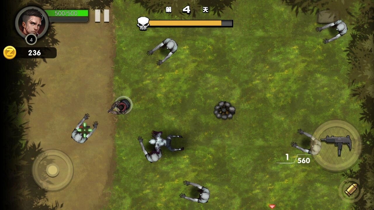 2.空旷的荒野里会持续出现丧尸,因此你得将它们全部消灭。