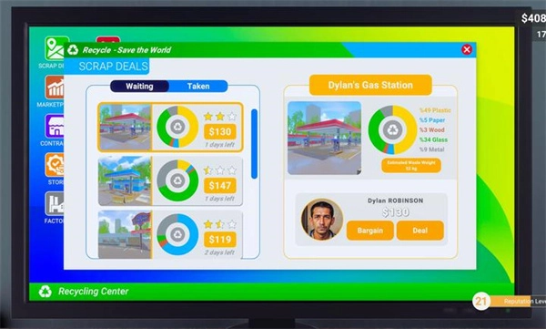 2、当垃圾车装满垃圾后,把它开入垃圾站,玩家就能让收益达到最高。每一次装载废料都非常关键,这不仅能带来利润,还能切实降低周边的污染。
