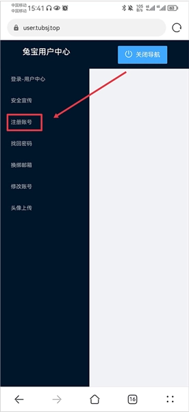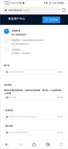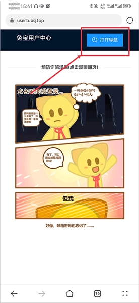 2、在浏览器中打开兔宝用户中心页面后,点击开启导航