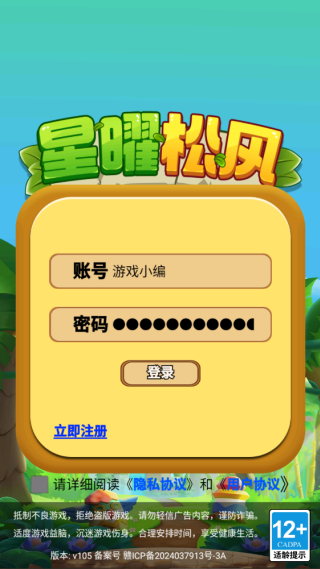 1、安装好安装包后进入游戏,首次游玩需要注册账号,请注意该游戏设有实名认证系统。