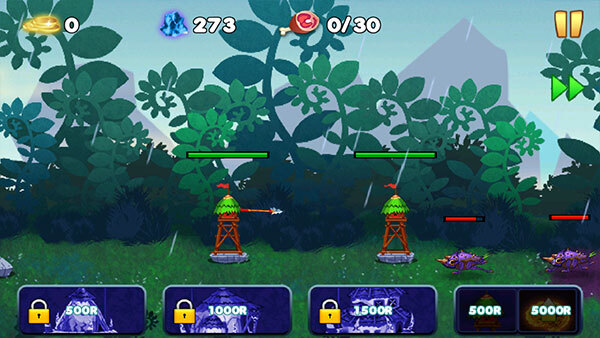 5、下面这些是你能够建造的防御塔,顶部持续增长的就是你的资金。