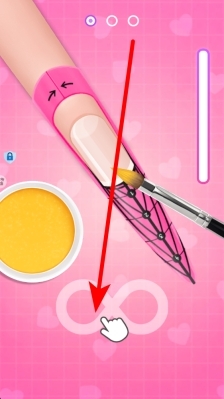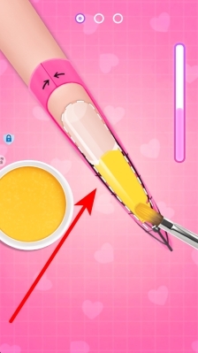 2、涂甲油时得注意指甲的形状和涂抹范围,依据游戏给出的区域提示来操作,把甲油准确涂在指甲上,别超出边缘,这样美甲的初步效果会更干净好看。