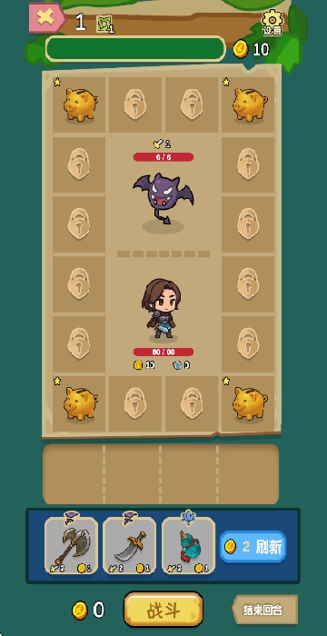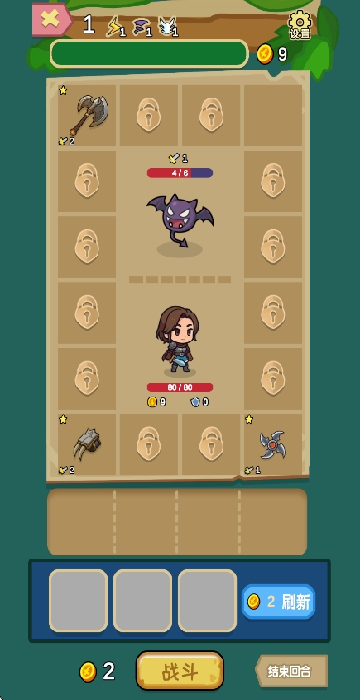 2、游戏的战斗环节借助轮盘机制展开,玩家需在轮盘内放置各类武器,系统将随机选取武器执行攻击操作。