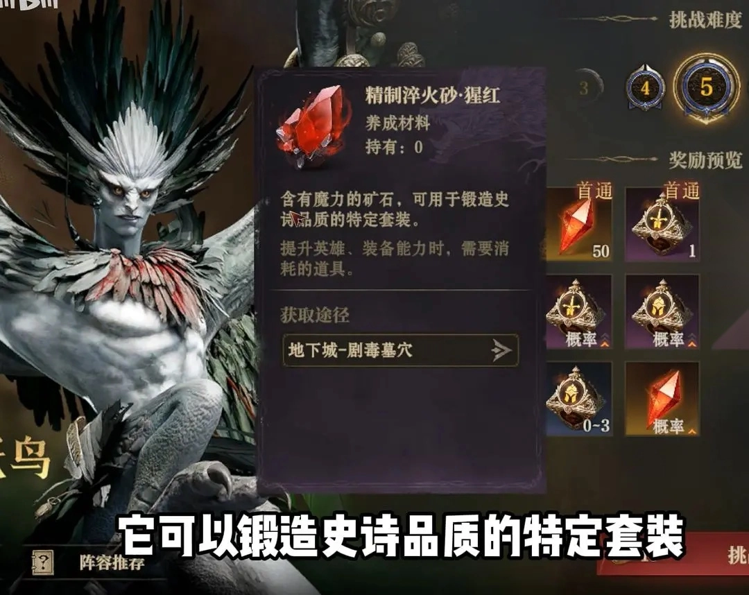 精致淬火砂-猩红:可用于锻造特定史诗套装,该道具从剧毒墓穴第五层往后开始掉落。