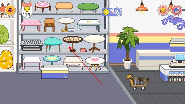 打开米加小镇,在地图中进入家具用品店。