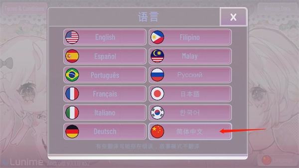 2、在语言设置中选择“简体中文”选项;