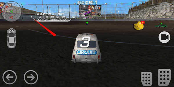 3、可通过左下角的方向盘控制装置调整行驶方向,右下角则分别设有刹车按钮和油门按钮供操作。