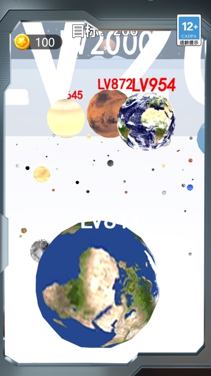 2、充满奇幻色彩的太空场景搭配丰富多样的球体造型,玩家可自主规划移动路径与吞噬策略,游戏还会持续更新外观形态与各类道具。