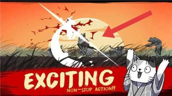 3、体验“EXCITING-NON-STOP-ACTION!!”的战斗,跟着箭头提示,操控武士猫施展技能(比如剑气),战胜敌人,推进关卡进程。