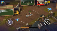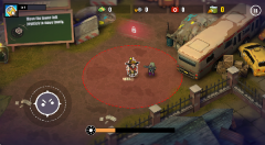 2、通过操控左侧的虚拟摇杆,便能控制角色进行移动,角色会自动发起攻击来消灭僵尸。