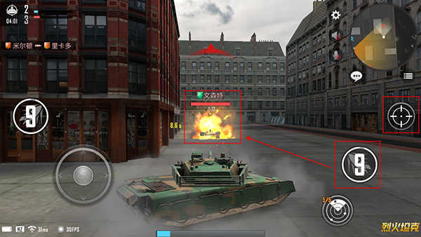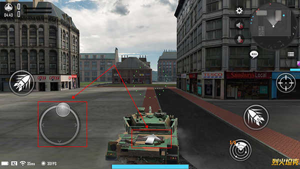3、玩家能够借助左侧的轮盘来操控坦克的移动,在坦克的中间位置可以看到一个箭头,箭头指向哪个方向,坦克就会朝着哪个方向移动。