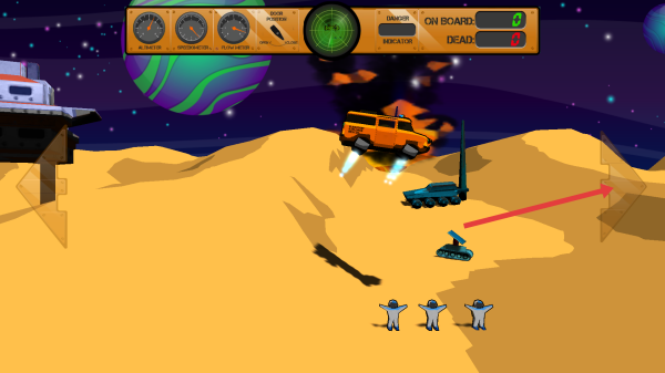 1、驾驶太空车时,留意地形中的沙丘与熔岩,通过左右箭头来控制方向,遇到坡道时放慢速度以防翻车,确保行驶安全。