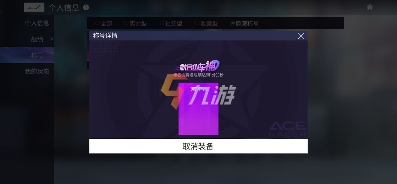 获取条件为:需在未发生碰撞的情况下,于1分27秒内完成枫落过隙赛道;除上述两个称号外,此前的几个隐藏称号也在此为小伙伴们列出,具体如下。