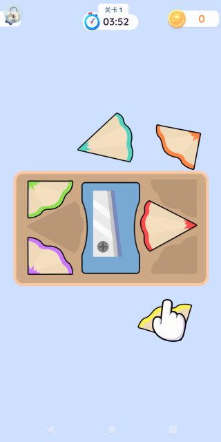 1. 在第一关里,玩家得把彩色铅笔屑放到和对应形状完全匹配的位置上,这样才能通过这一关卡。